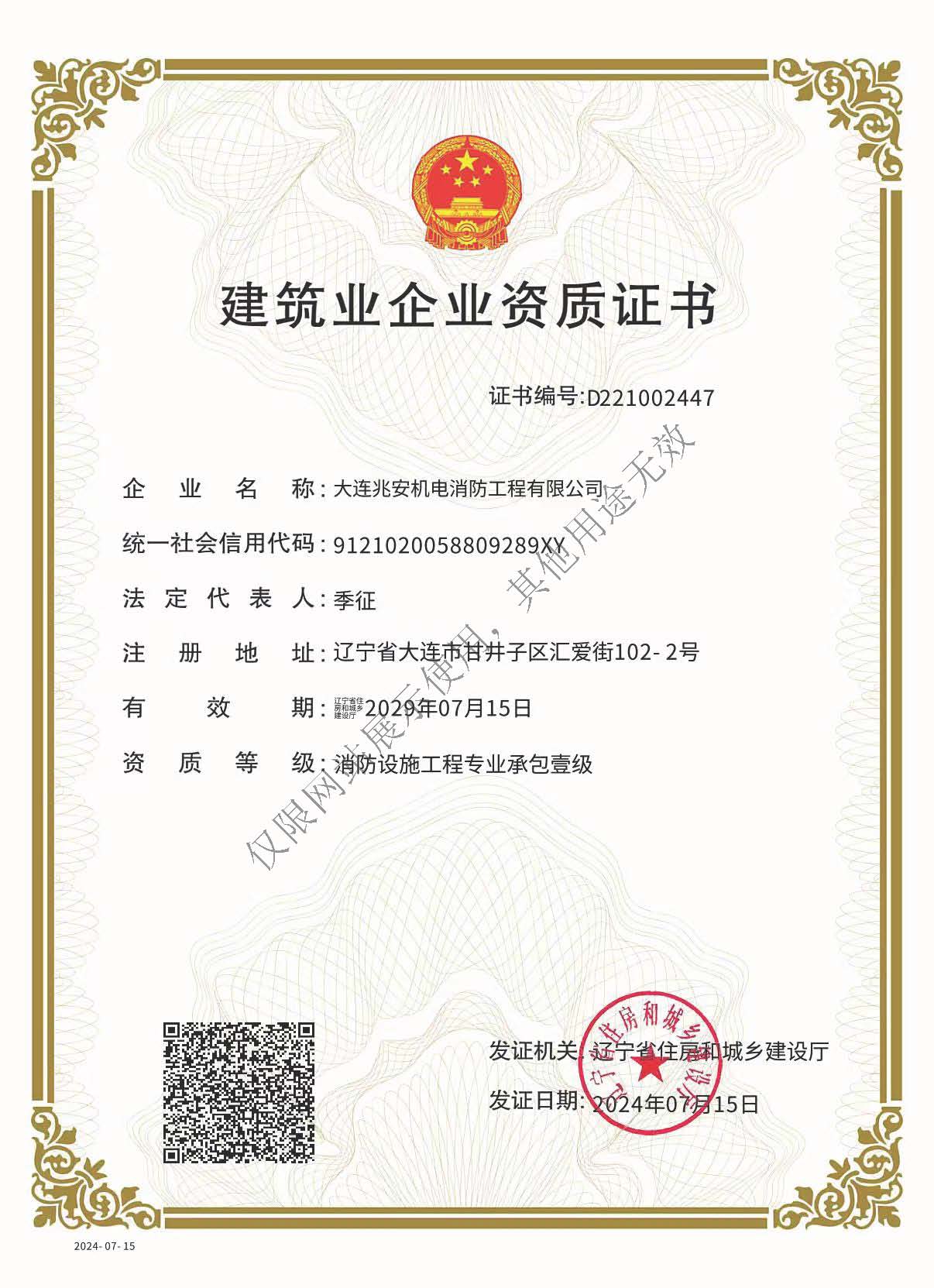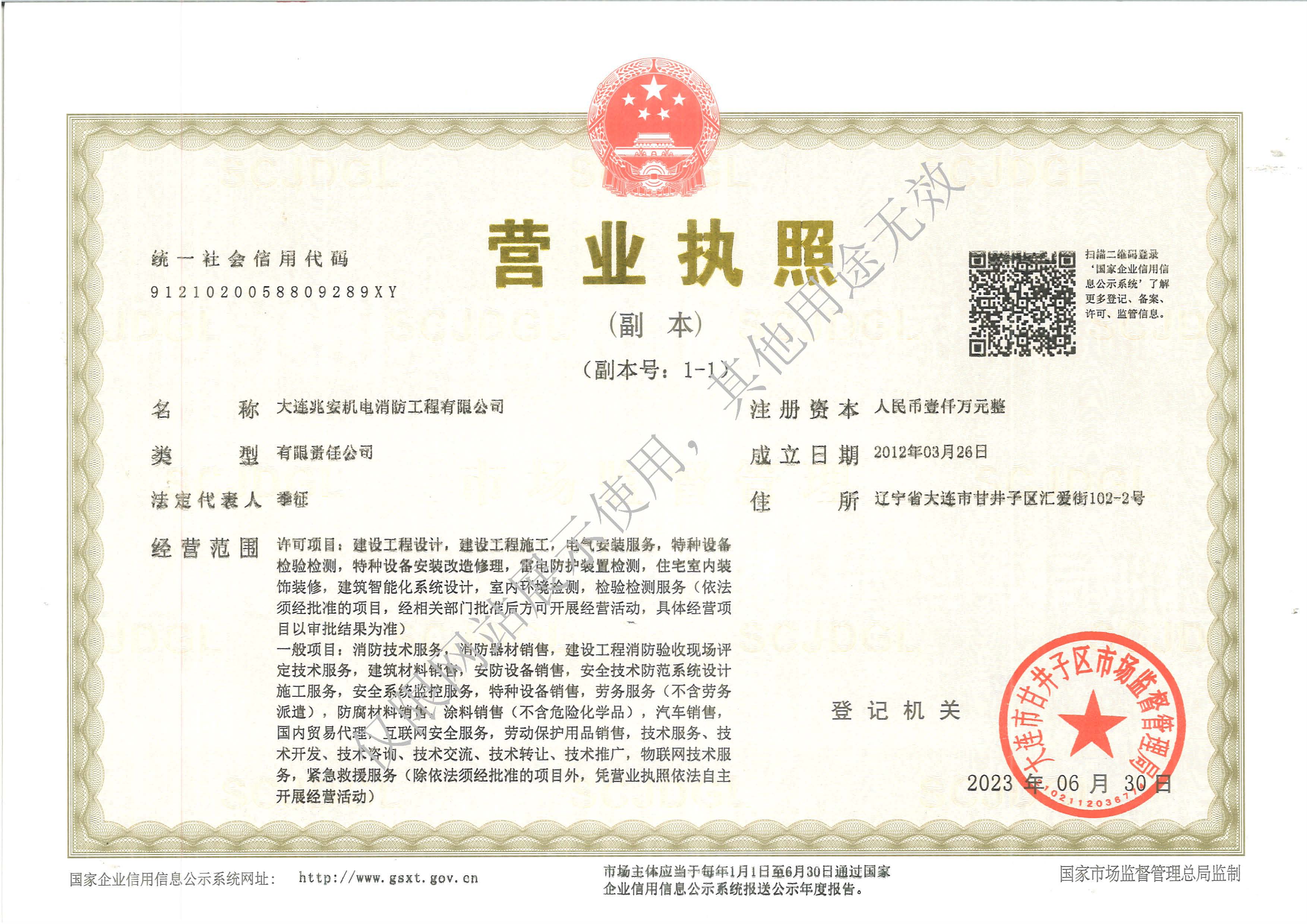 大连兆安机电消防工程公司营业执照