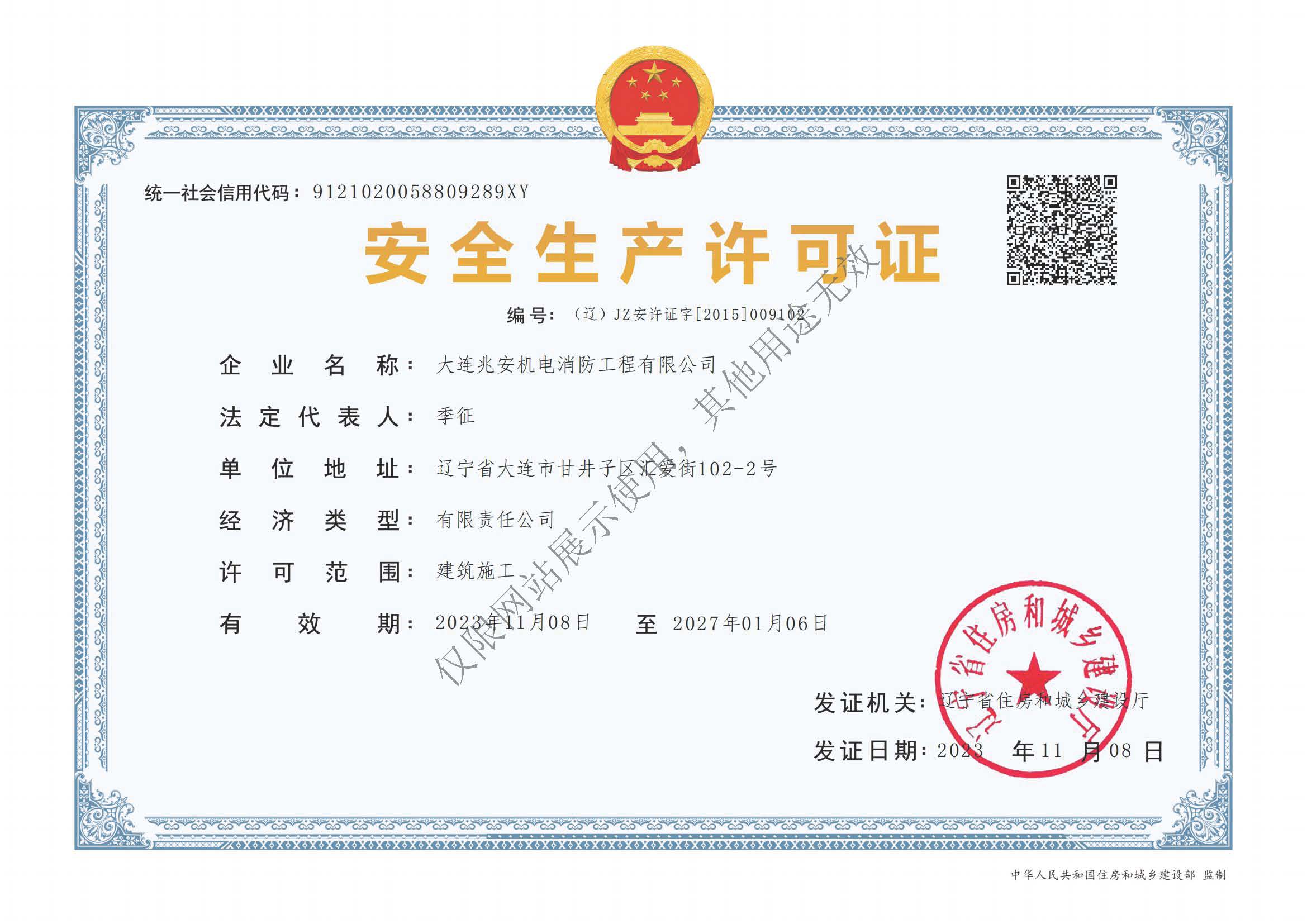 大连兆安机电消防工程有限公司是经辽宁省住房和城乡建设厅审批的消防设施工程工程专业承包一级单位,经“社会消防技术服务信息系统”备案并公示的消防技术服务机构,公司成立于2012年3月26日,并在2014年6月12日取得设计与施工一体化资质、次年的1月7日取得安全生产许可证,公司现有注册资金1000万元,2022年资产总值1635万元;